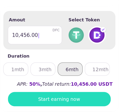 The lowest APR that we offer is 10% for one month USDT deposit – this is when you invest from 100 to 1000 USDT. The highest APR are offered in DFC deposits – up to 25% APR for 12 month investment of DFC worth more than 5000 USDT. The full offer is published in our website.